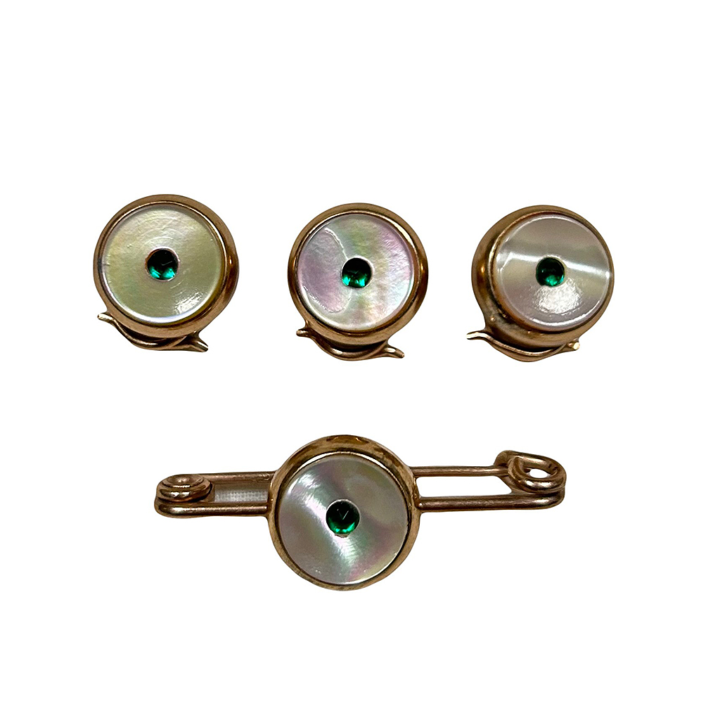 MOTHER OF PEARL AND GOLD STUDS AND TIE BAR SET