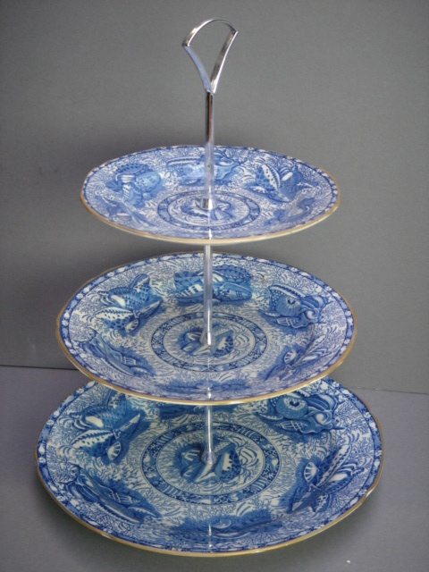 MOTTAHEDEH TORQUAY THREE TIER CAKE STAND BLUE SHELL PAT.