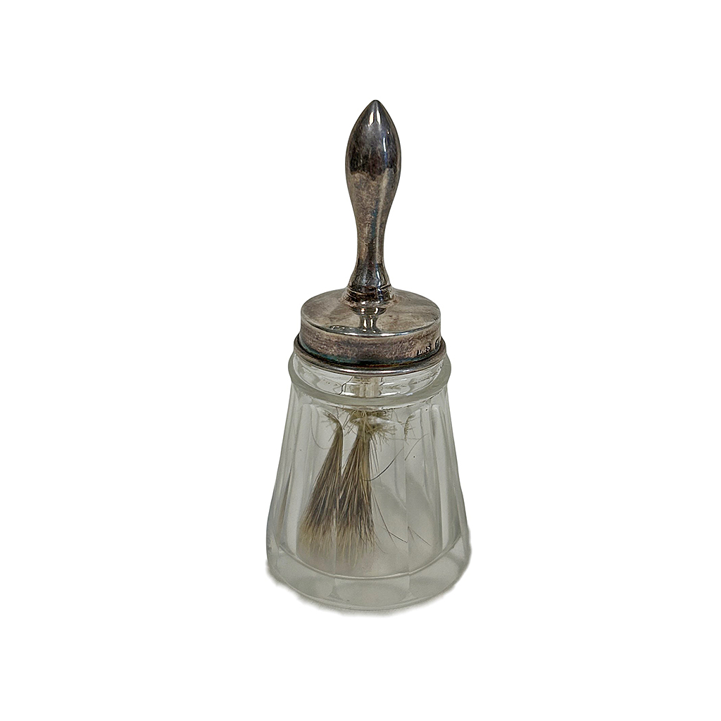MOULDED GLASS GLUE POT WITH SILVER LID