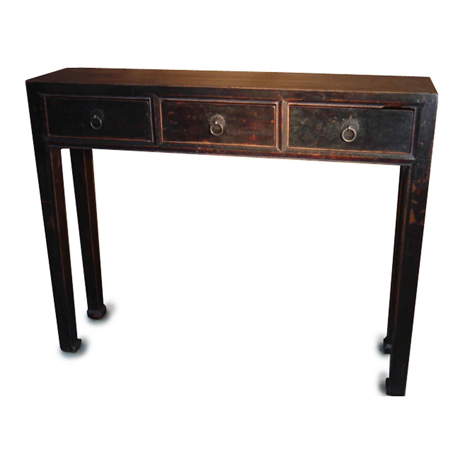 NARROW CHINESE SIDE TABLE WITH THREE DRAWERS 85 CM HIGH 104 CM LONG 24 CM DEEP