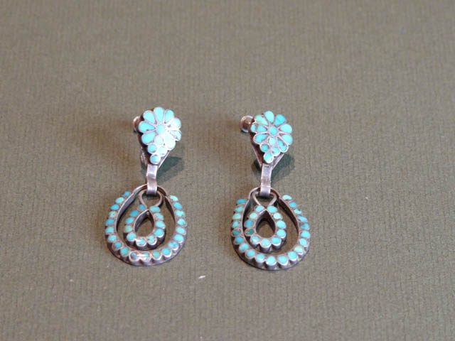 NATIVE AMERICAN SILVER AND TURQUOISE DROP EARRINGS