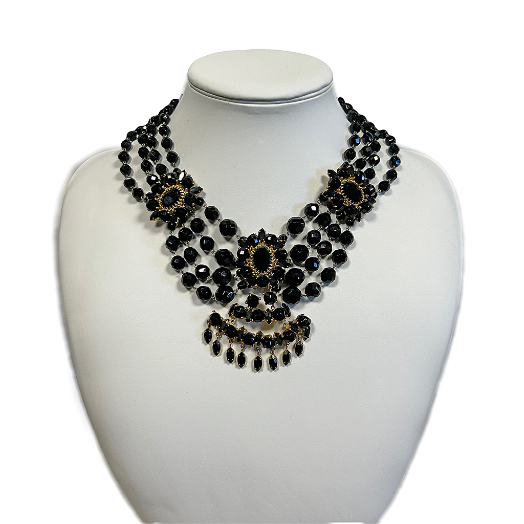 NECKLACE CHRISTIAN DIOR BLACK GLASS AND GILT ATTRIBUTED TO ROGER SCOMAMA CIRCA 1980