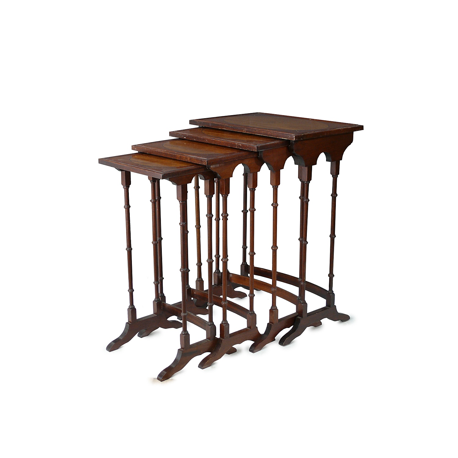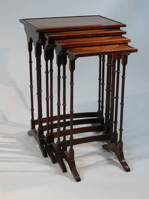 NEST OF FOUR MAHOGANY OBLONG INLAID OCCASIONAL TABLES 2'4/i HIGH X 1'8/i WIDE X 1'2/i DEEP 71CM X 51CM X 36 CM