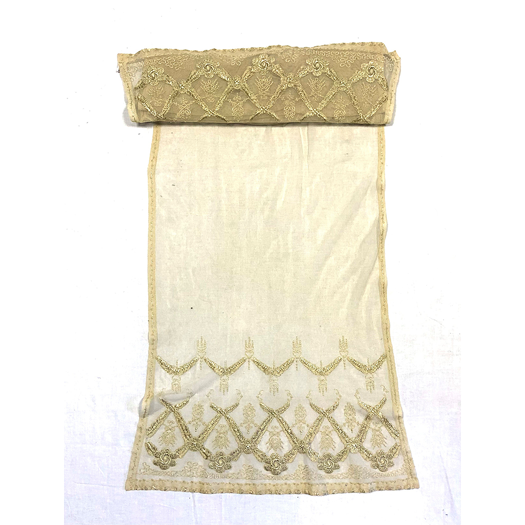 NET CREAM STOLE WITH WITH SILK FLORAL EMBROIDERY BORDER 8' LONG / 1'9'' WIDE