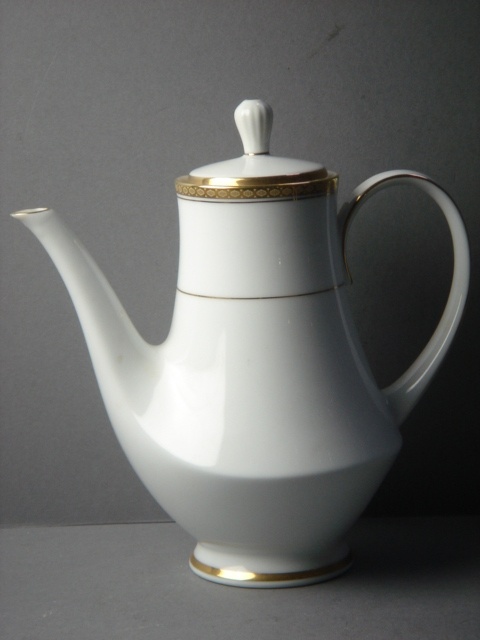 NORITAKE RICHMOND / WINDSOR COFFEE POT AND LID WHITE WITH GOLD BAND (X7)