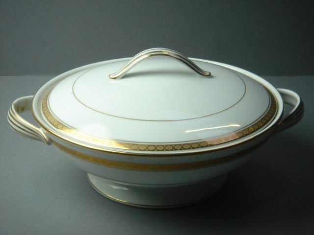 NORITAKE RICHMOND / WINDSOR COVERED VEG. DISH WHITE WITH GOLD BAND (X6)