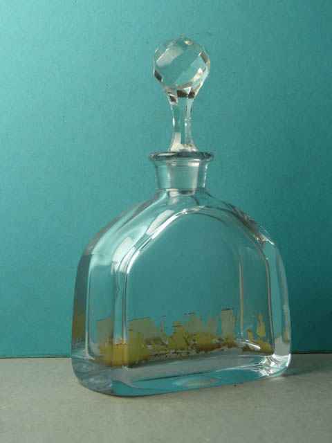 OBLONG FLAT CUT GLASS SPIRIT DECANTER AND STOPPER 24 CM