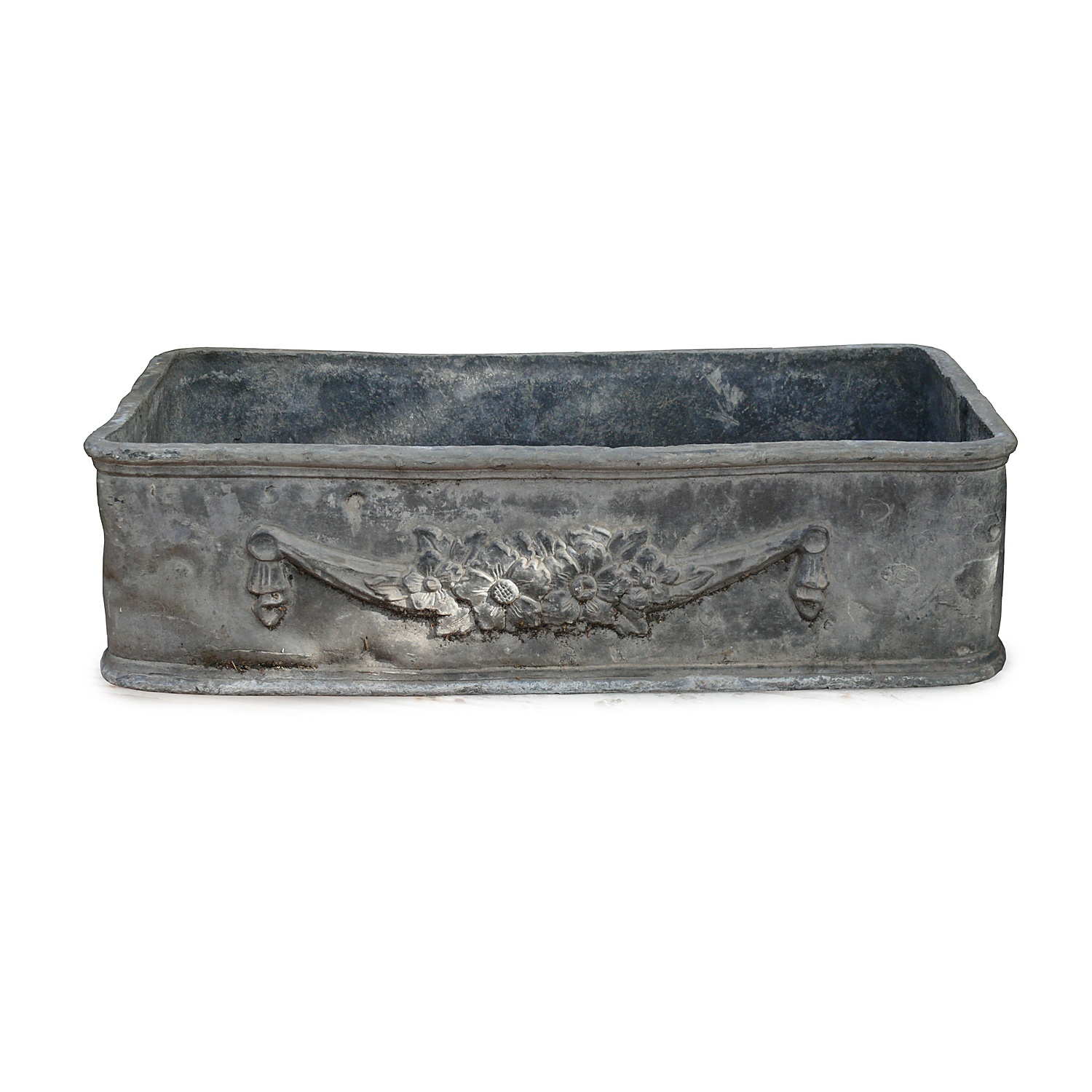 OBLONG LEAD GARDEN TUB / URN SWAG DESIGN 56 CM LONG (X2)