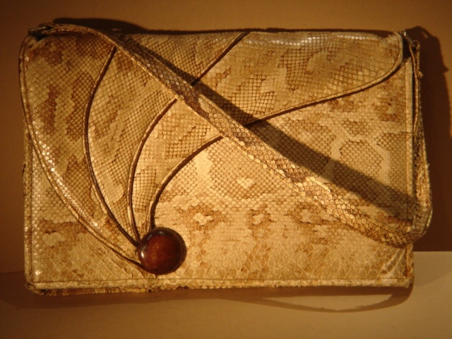 OBLONG SNAKESKIN HANDBAG WITH SHAPED FLAP AND BUTTON CATCH