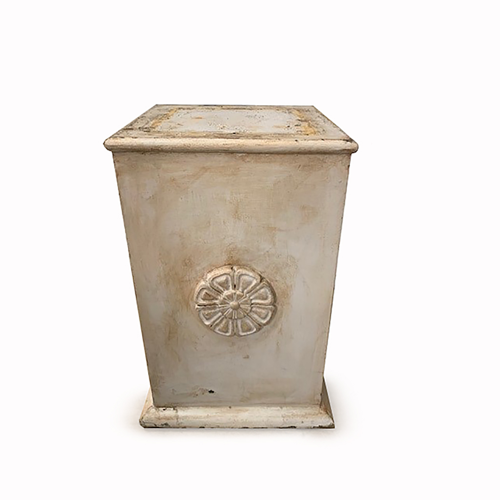 OFF WHITE PAINTED SMALL PEDESTAL / PLINTH WITH CAST ROSETTES 64 CM HIGH 40 CM WIDE 40 CM DEEP (X2)