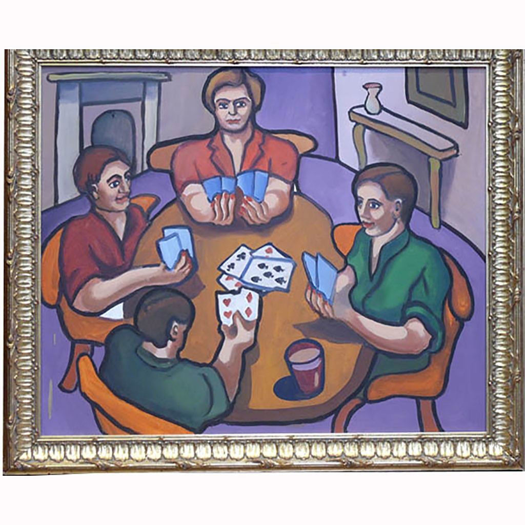 OIL PAINTING 20 /i X 24 /i MODERNIST STYLE CARD GAME IN GILT FLUTED FRAME