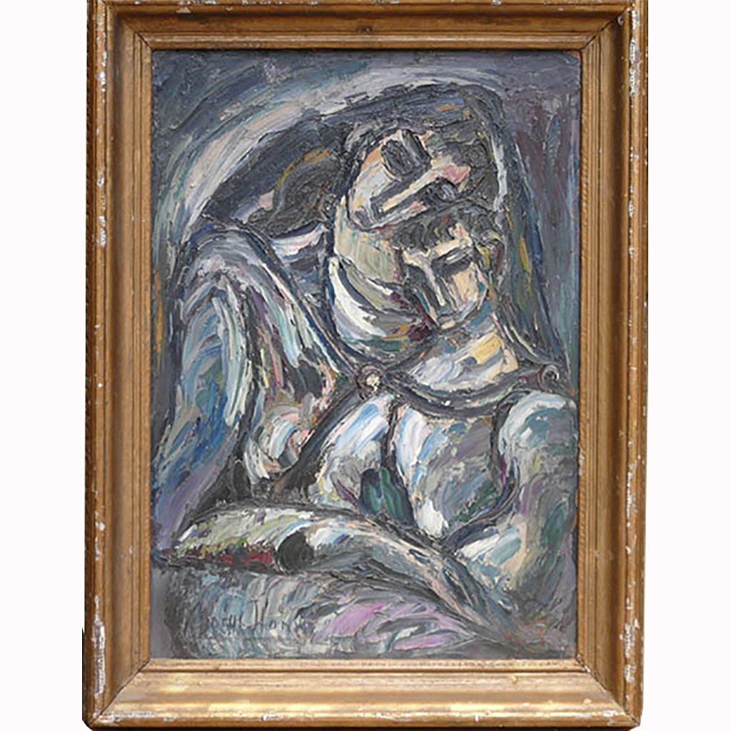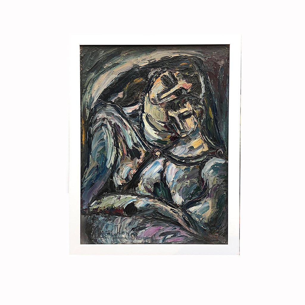 OIL PAINTING 26 /i X 18 /i 20TH CENTURY EXPRESSIONIST PORTRAIT OF THE MADONNA AND CHILD IN A HEAVY GILT FRAME