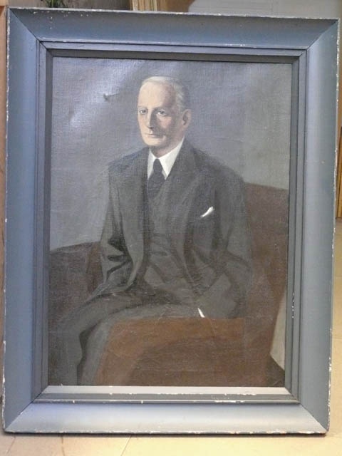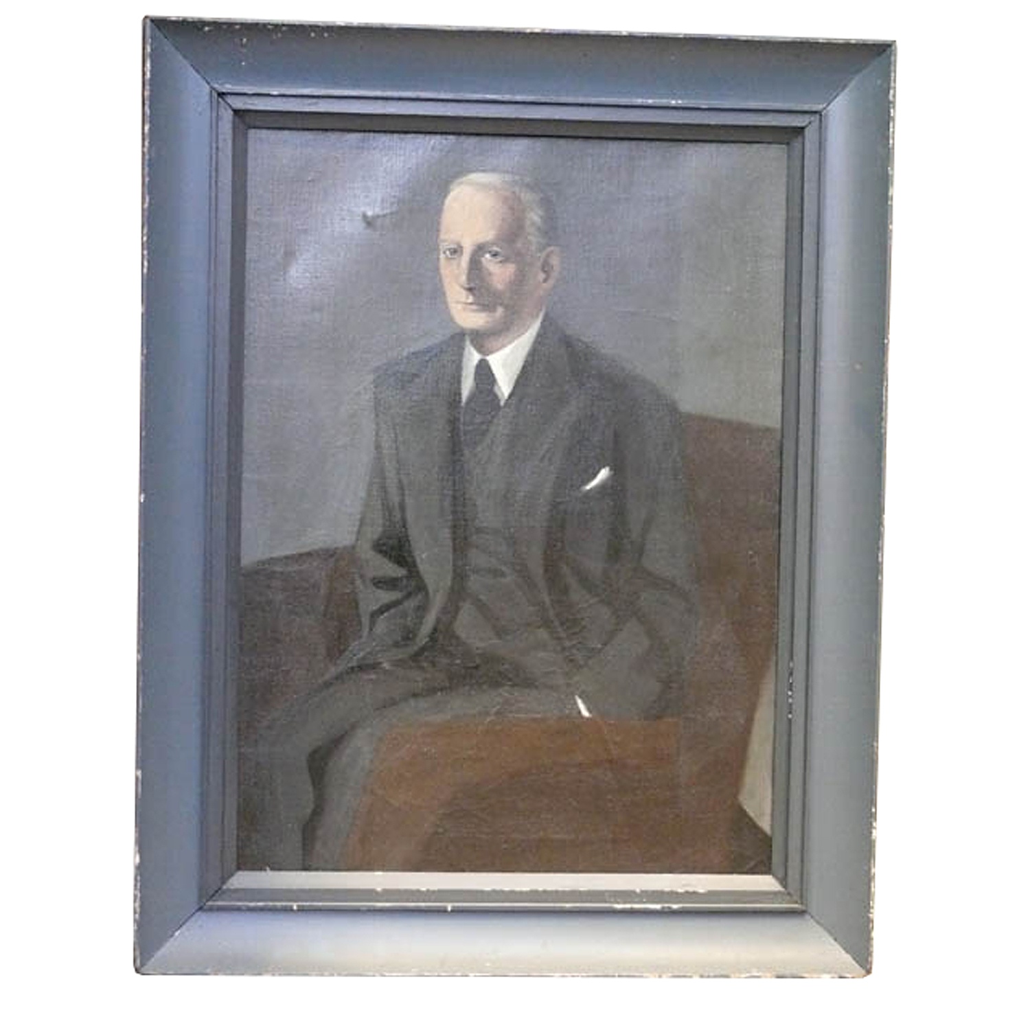 OIL PAINTING 30 /i X 22 /i PORTRAIT OF A 1940S GENTLEMAN IN A BLUE PAINTED FRAME
