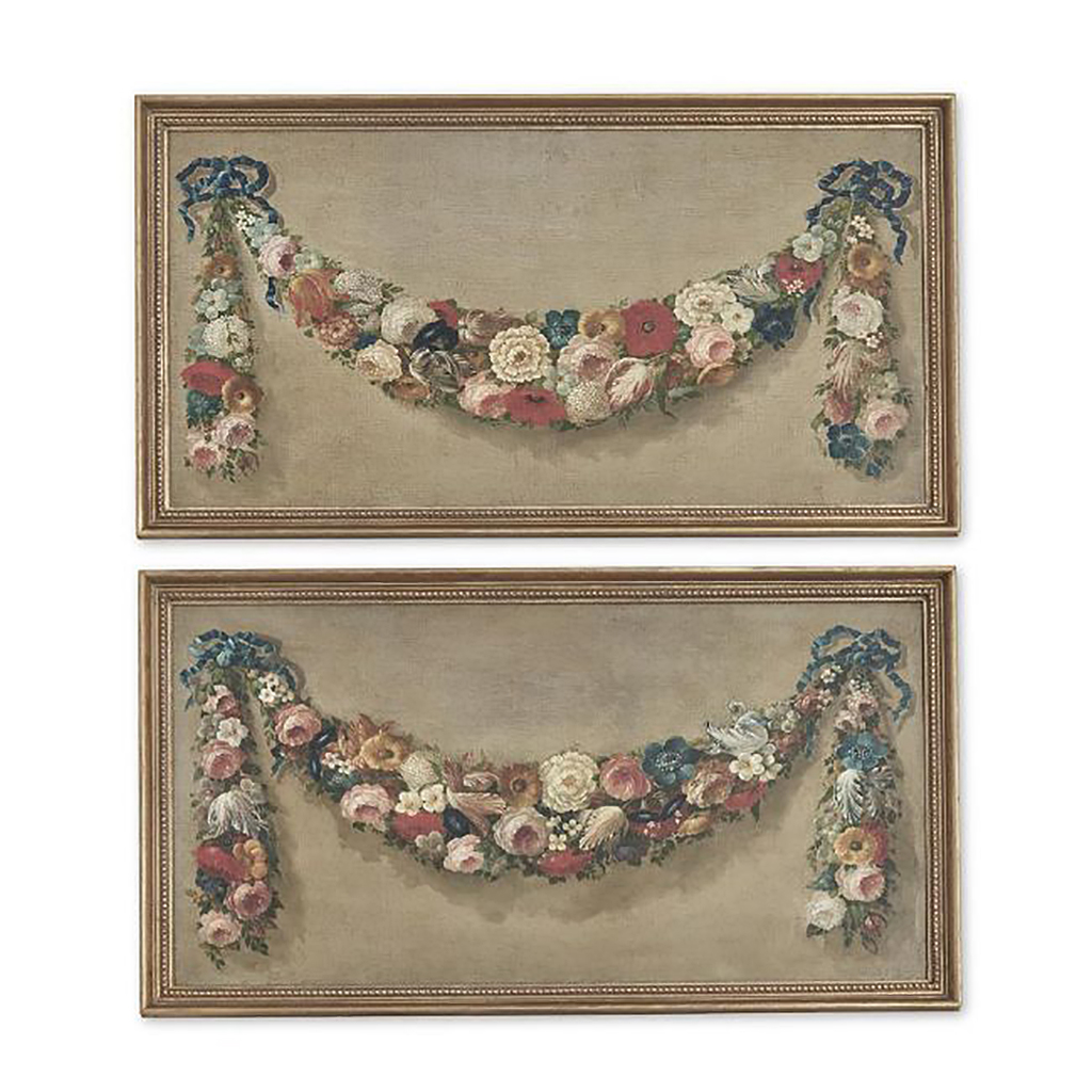 OIL PAINTING OF FLORAL SWAGGED GARLANDS CIRCLE OF ANNE VALLAYER-COSTER, CIRCA 1780 OIL ON CANVAS UNSIGNED 22" X 42 CM