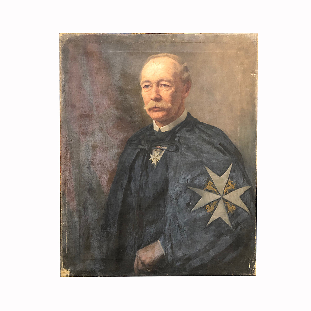 OIL PAINTING OIL ON CANVAS OF A VENERABLE GENTLEMAN WEARING A BLACK CLOAK MALTESE CROSS
