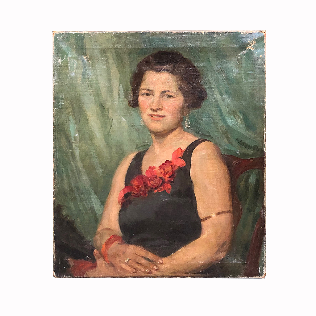 OIL PAINTING PORTRAIT ON CANVAS OF A LADY CIRCA 1950 UNFRAMED