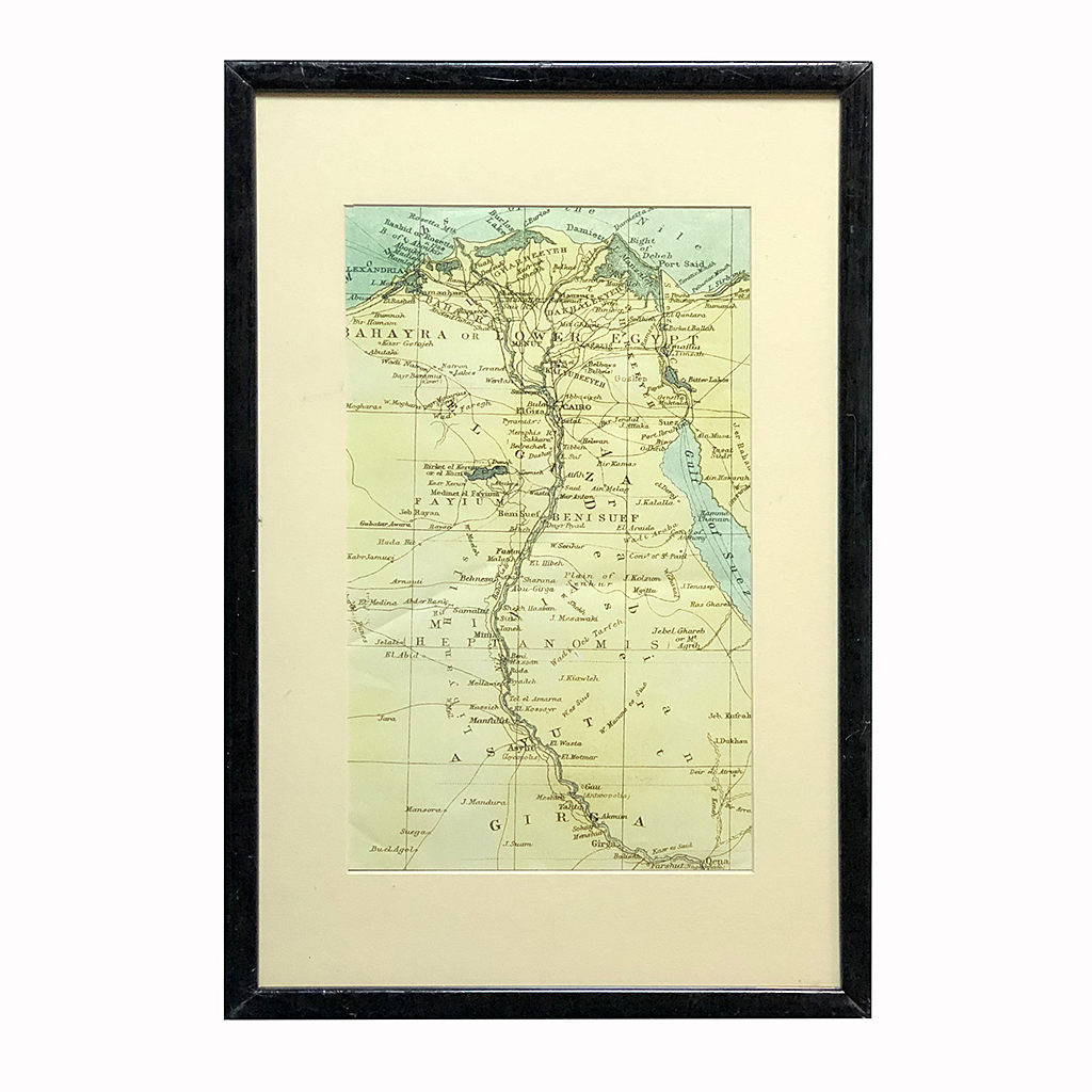 OLD COLOURED MAP OF LOWER EGYPT IN A BLACK FRAME
