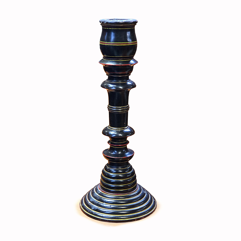 ORIENTAL BLACK LACQUER TURNED WOOD CANDLESTICK 30 CM HIGH