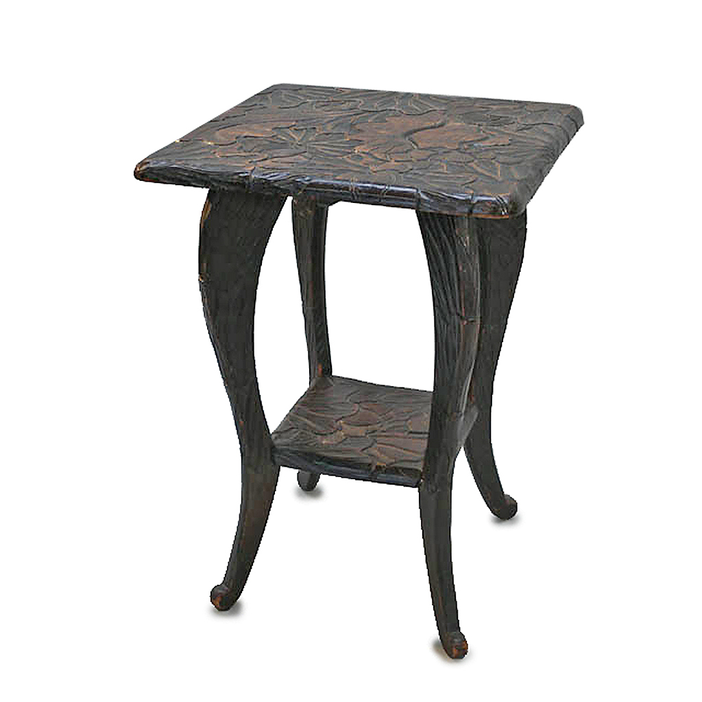 ORIENTAL CARVED SQUARE DARK WOOD MARIGOLD TABLE 70 CM HIGH 50 CM WIDE 50 CM DEEP