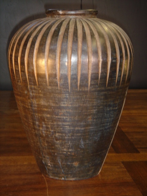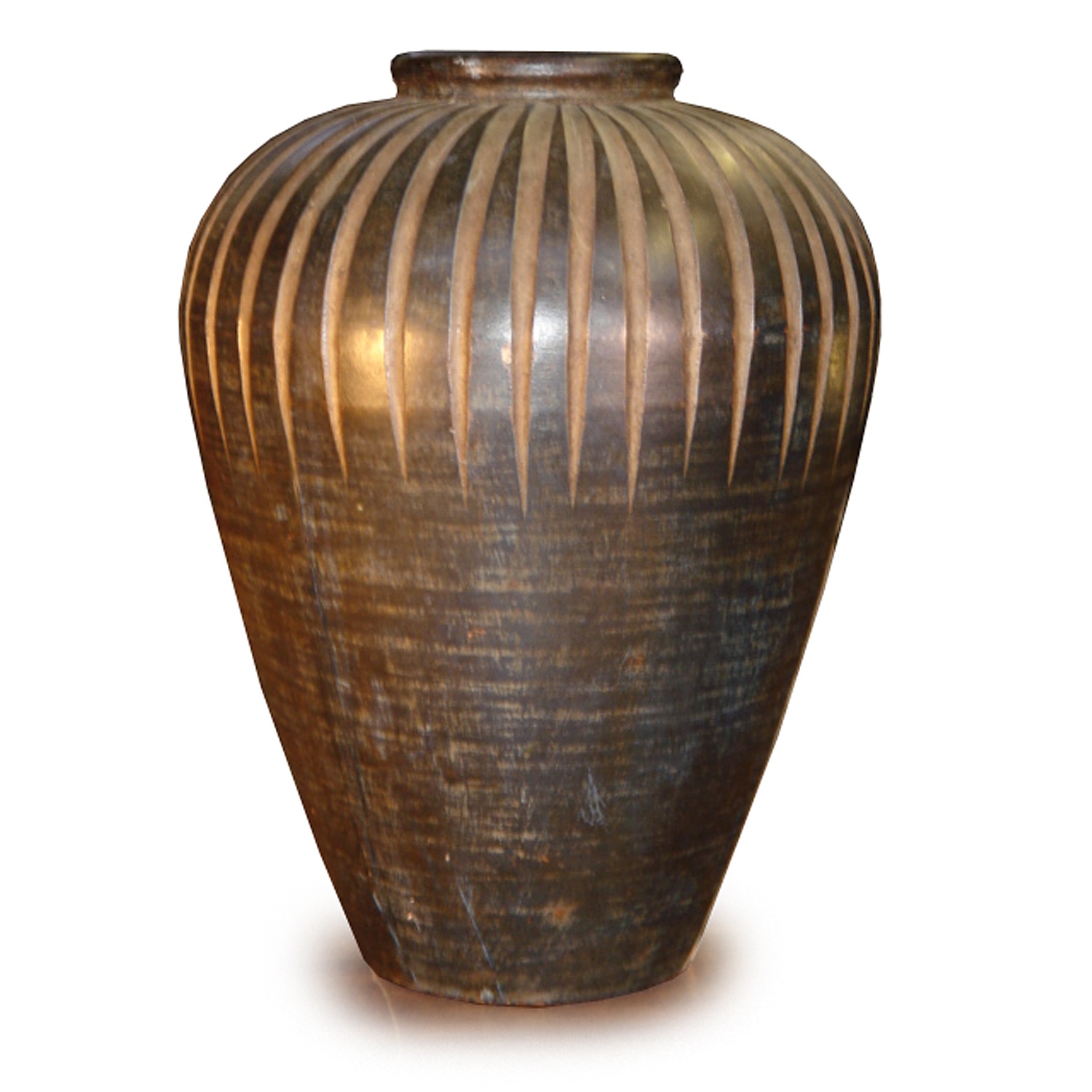 ORIENTAL LARGE BLACK RIBBED VASE 56 CM HIGH (X3)