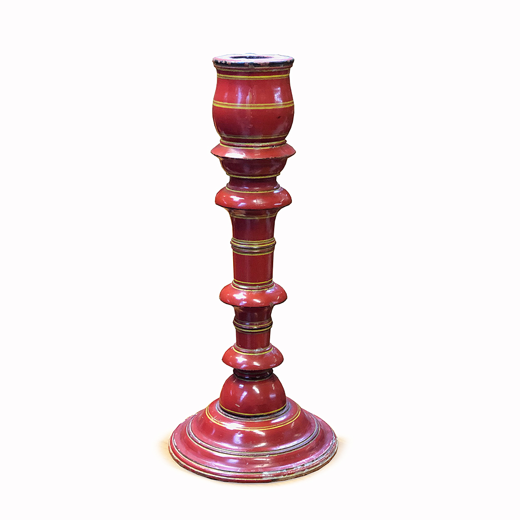 ORIENTAL RED LACQUER TURNED WOOD CANDLESTICK 30 CM HIGH