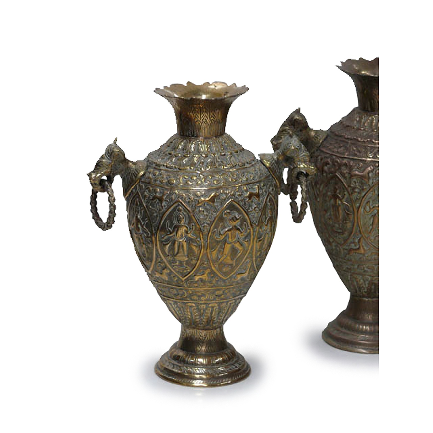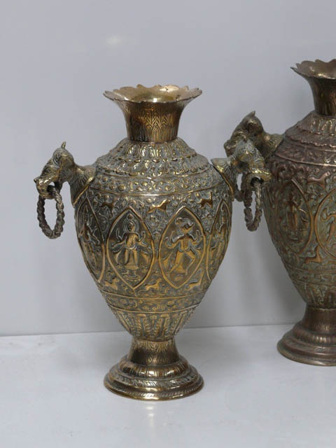 ORNATE BRASS VASE INDIAN WITH RING HANDLES (X2)