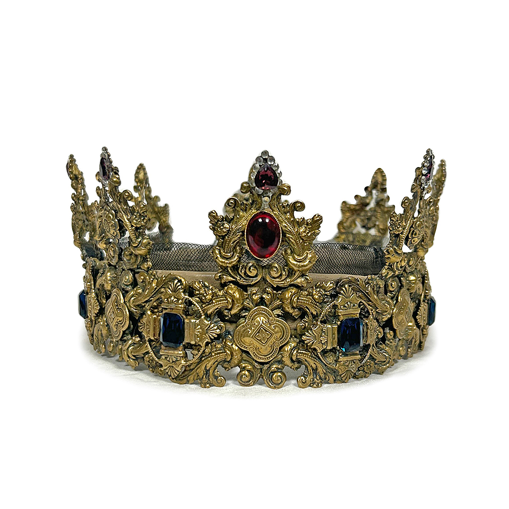 ORNATE GILT METAL AND PASTE JEWELLED CROWN
