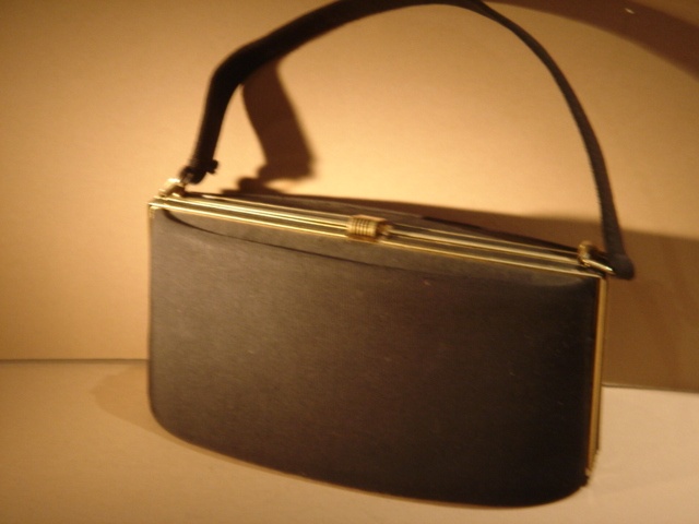 OVAL BLACK SATIN HANDBAG 22 CM WIDE