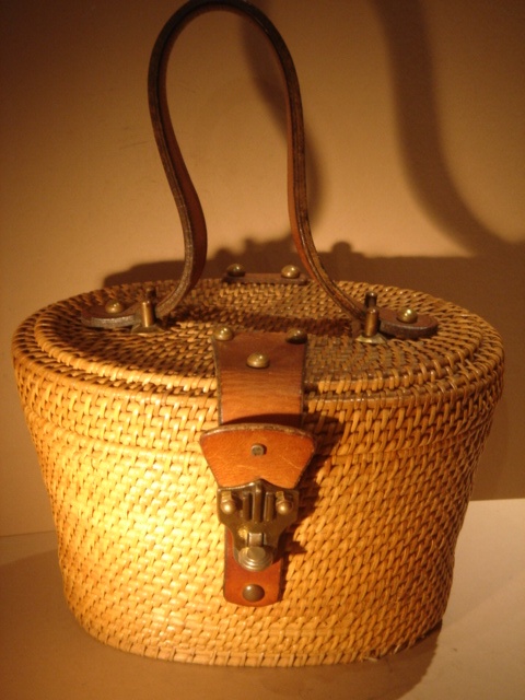 OVAL EDWARDIAN BASKET WEAVE HANDBAG WITH LEATHER TRIM 26 CM WIDE