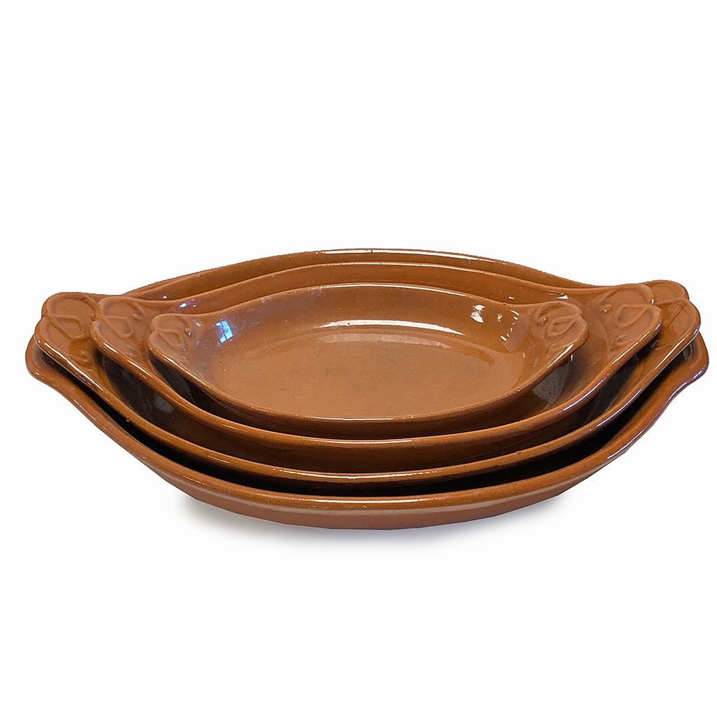 OVAL GLAZED EARTHENWARE SHALLOW DISH 24 CM 37 CM LONG (X4)