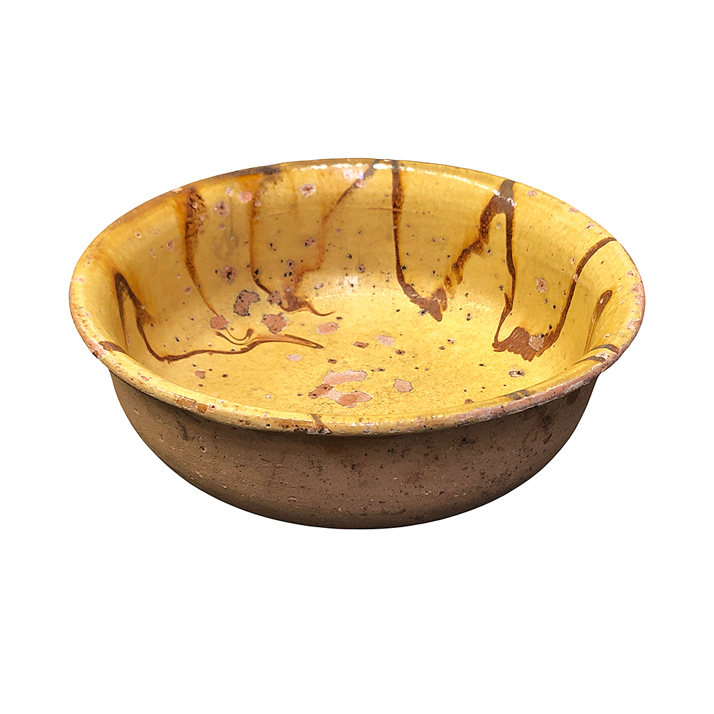 SHALLOW FRENCH AMBER AND BROWN GLAZED BOWL 21 CM DIAM