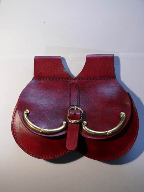 OX BLOOD RED LEATHER POUCH BELT BAG WITH BRASS MOUNTS MEDIEVAL STYLE 19 CM HIGH