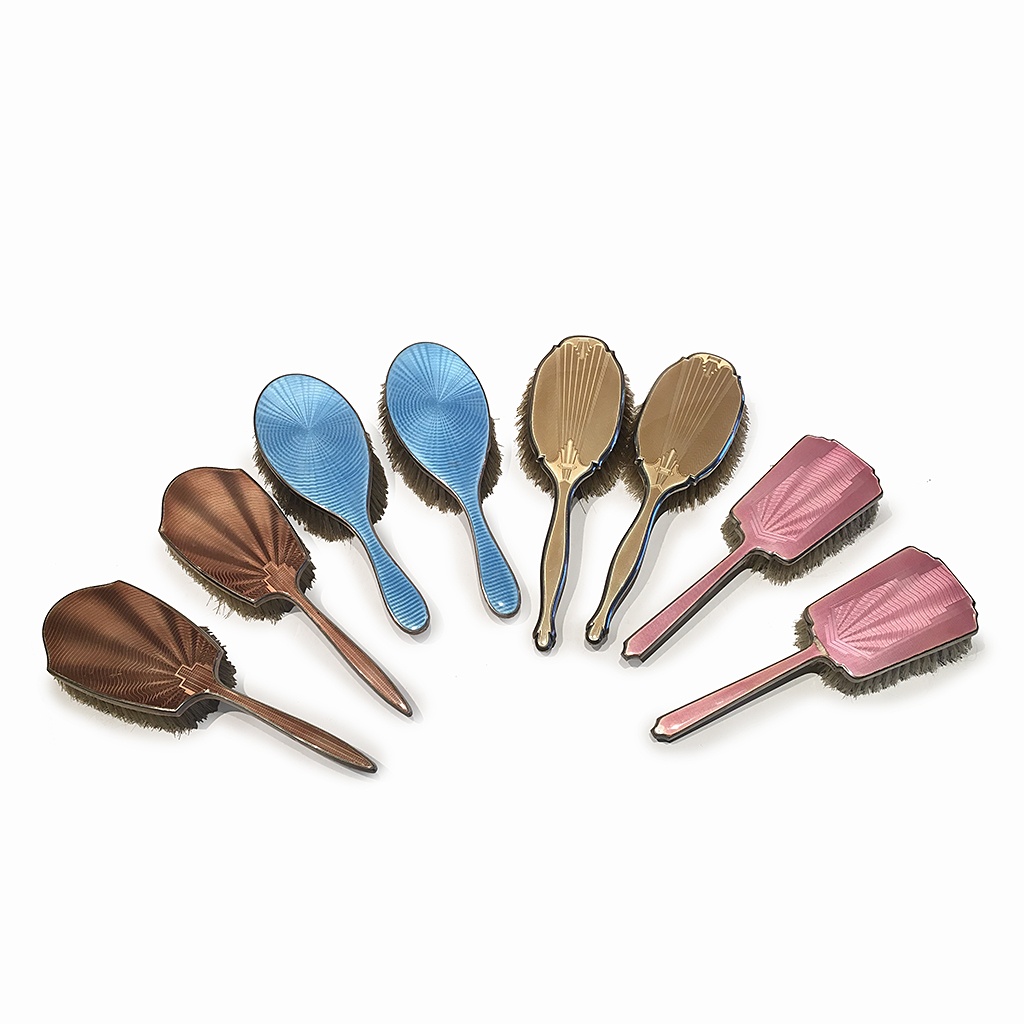 PAIR OF ENAMEL BACKED HAIR BRUSHES AS LISTED