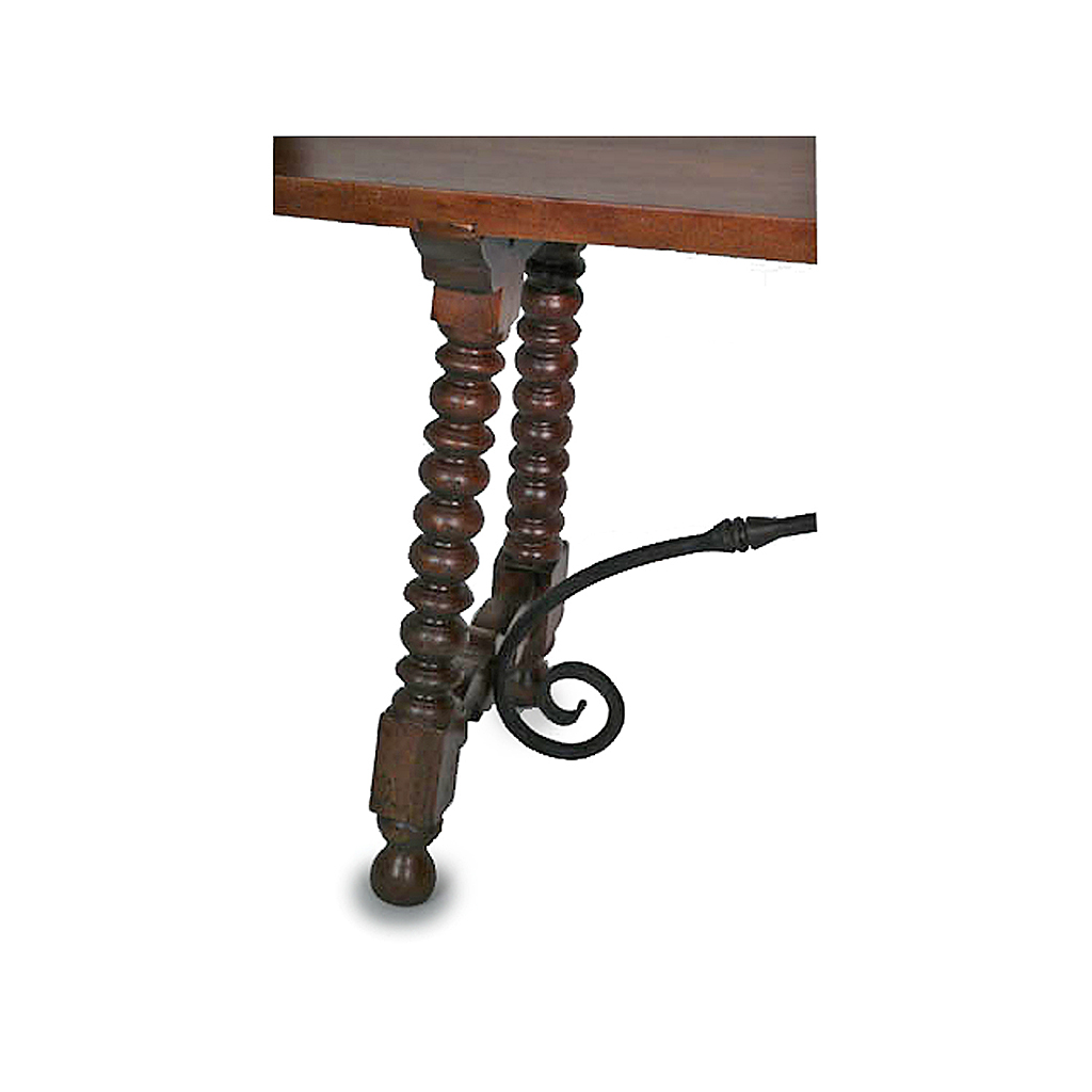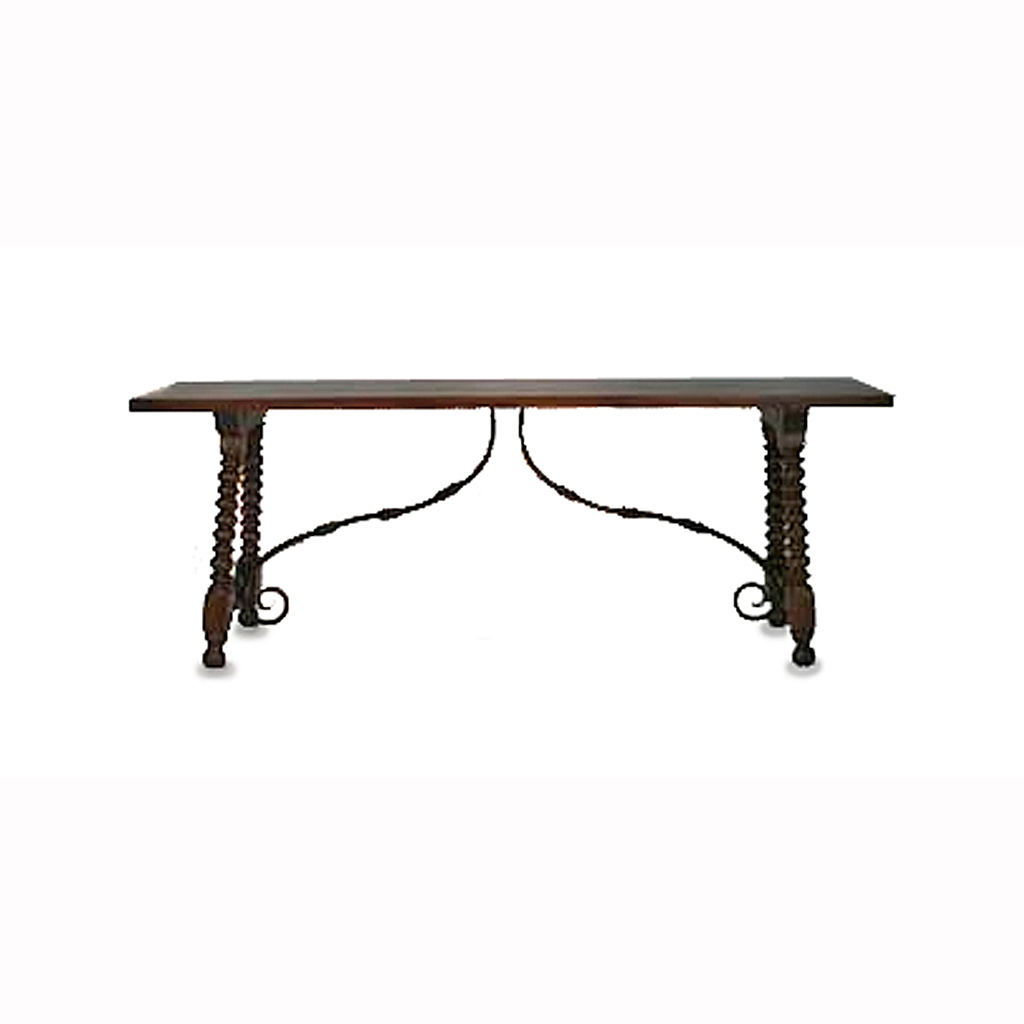 PAMPLONA SPANISH SIDE TABLE WITH SPLAYED BOBBIN TURNED LEGS AND WROUGHT IRON STRETCHERS 17TH CENT. STYLE 208 CM LONG 52 CM DEEP 77 CM HIGH