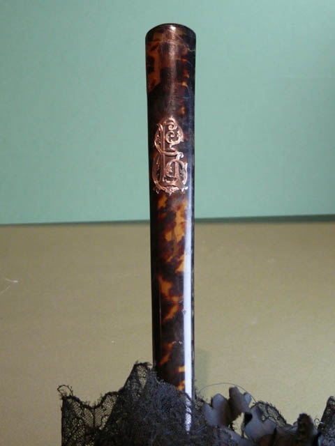PARASOL WITH LONG TORTOISESHELL HANDLE AND GOLD LETTERING