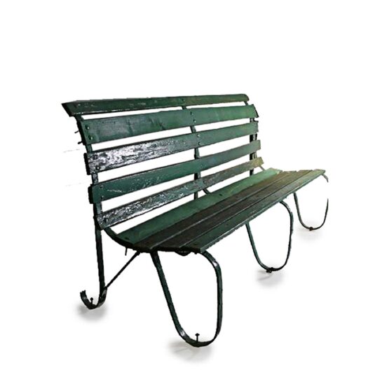PARK BENCH SIMPLE SLATTED ENGLISH WITH WROUGHT IRON LEGS 182 CM LONG 68CM DEEP 92CM HIGH