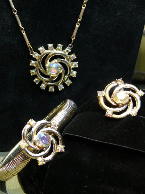 PASTE PENDANT ON GILT CHAIN NECKLACE WITH MATCHING BROOCH AND BRACELET