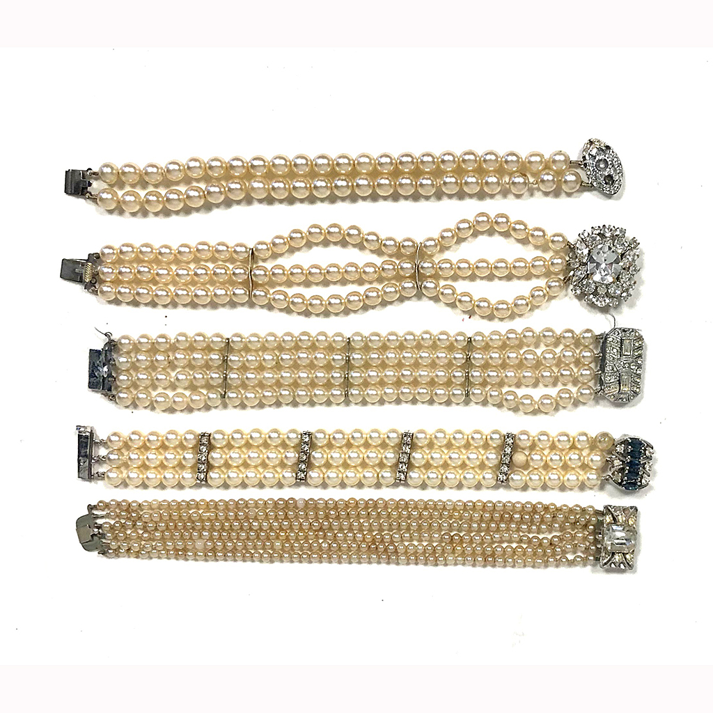 PEARL BRACELET WITH PASTE CLASP MULTI ROW