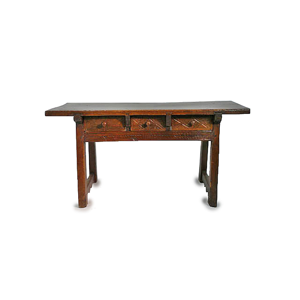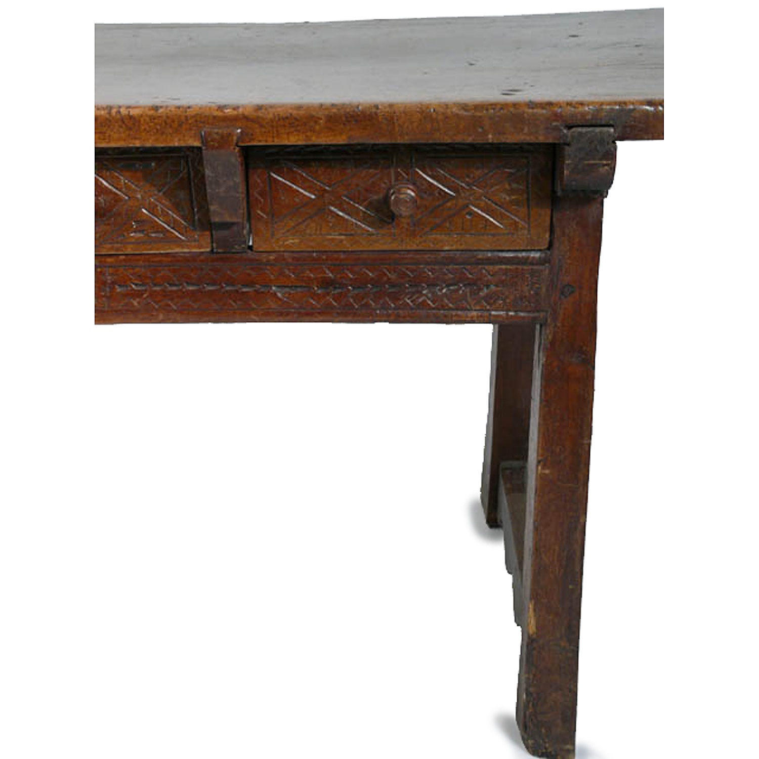 PERIOD SPANISH TABLE WITH THREE CHIP CARVED DRAWERS CHESTNUT EARLY 17TH CENT. 78 CM HIGH 155 CM WIDE 74 CM DEEP