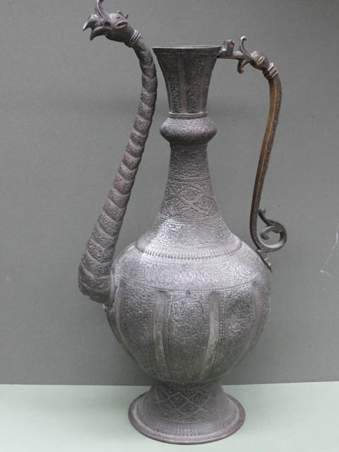 PERSIAN FINE INCISED BRONZE COFFEE POT DRAGON SPOUT 16/i