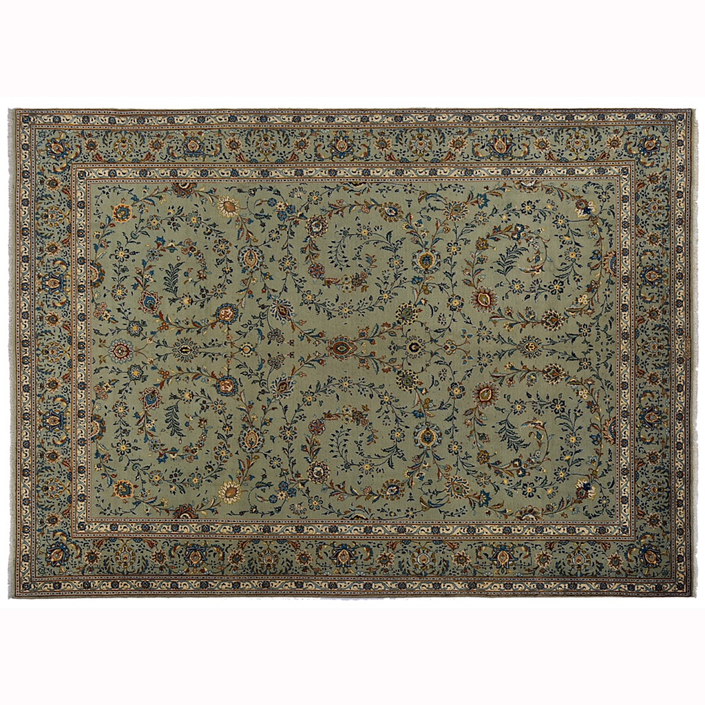 PERSIAN KASHAN CARPET / RUG FLORAL PATTERN ON CELADON GREEN GROUND 13í X 9í 11/i 396 CM X 300 CM