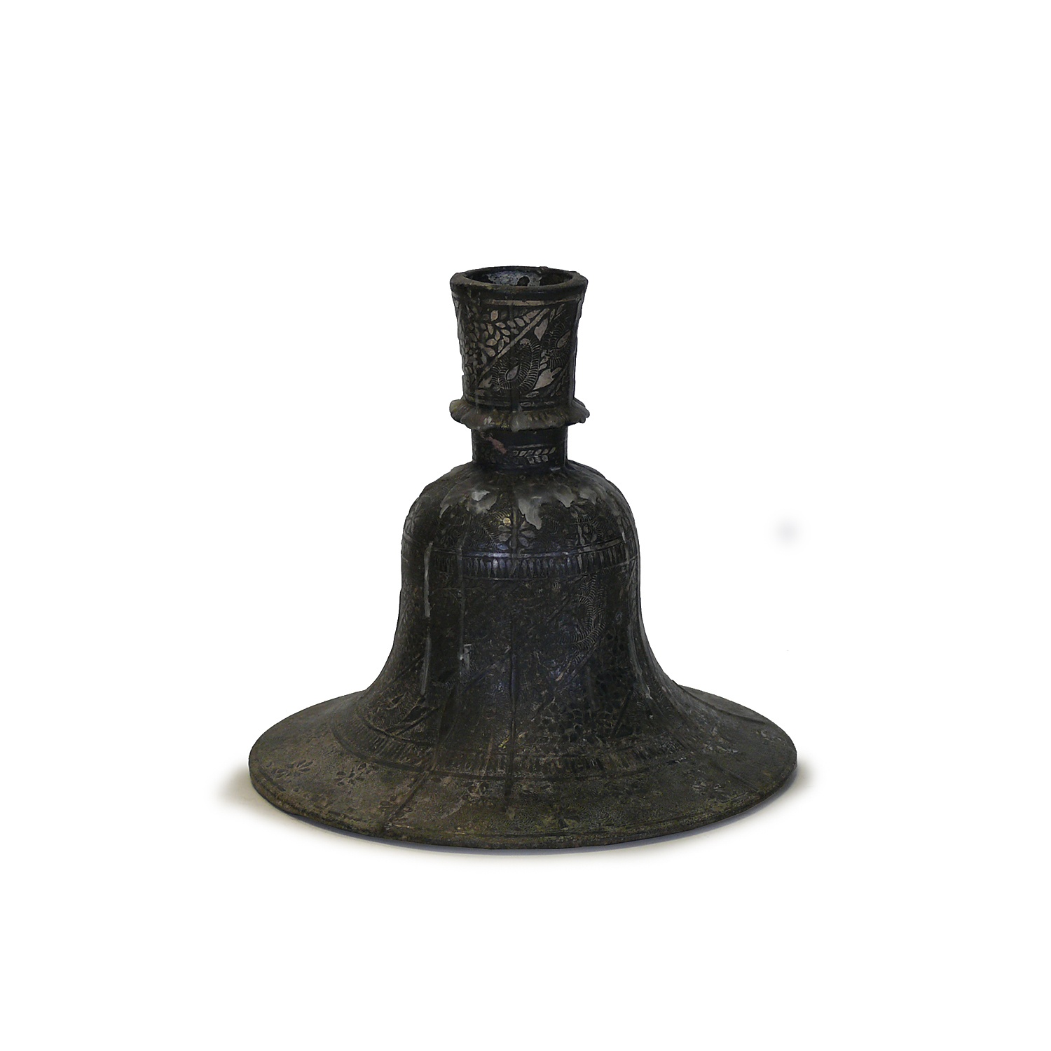 PERSIAN SMALL BRONZE GOBLET / CANDLESTICK BELL SHAPE HOOKHA BASE