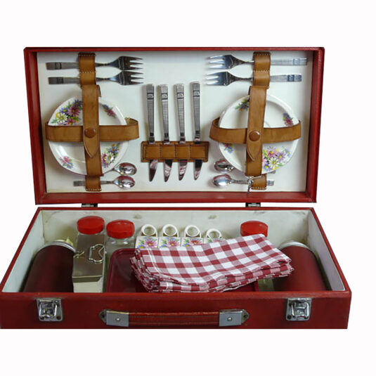 PICNIC HAMPER COMPLETE FITTED RED CASE WITH 30 PIECES