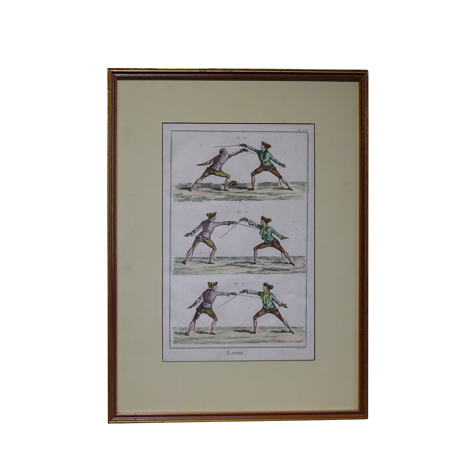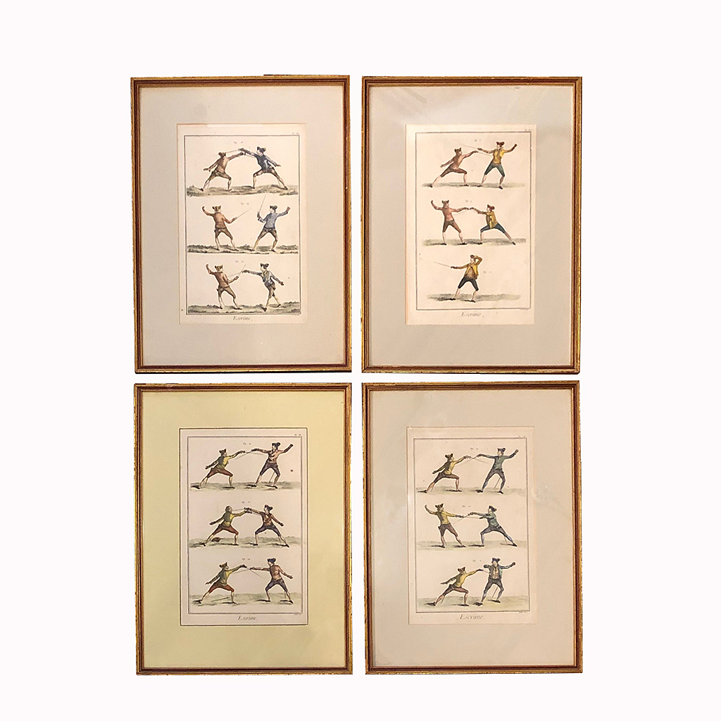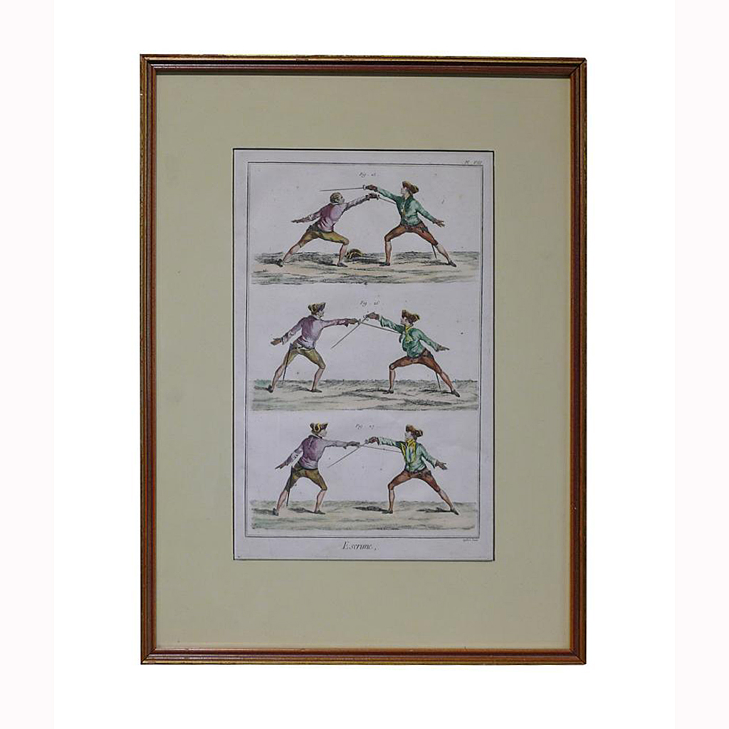 PICTURE FENCING ENGRAVING PALE GREEN MOUNT 53 CM X 39 CM INC. FRAME (X4)