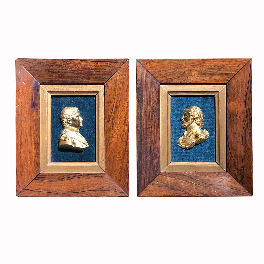 PICTURE ROSEWOOD FRAMED MINIATURE ORMOLU RELIEF NAPOLEON / SHAKESPEARE 23 CM HIGH 20 CM WIDE