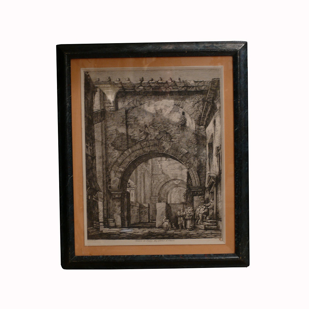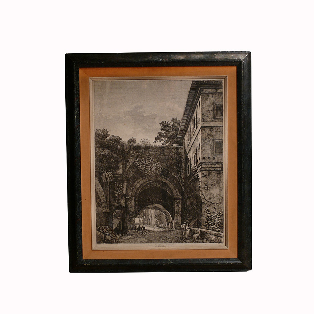 LUIGI ROSSINI ENGRAVING IN A BLUE FAUX MARBLE FRAME PORTICI DI FILIPPO 47 CM X 36 CM