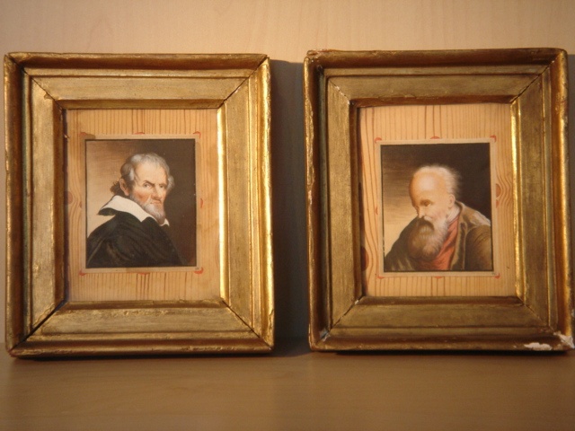 PICTURE SMALL GILT FRAMED MINIATURE PORTRAIT TROMPE LOEIL MOUNT (X2)