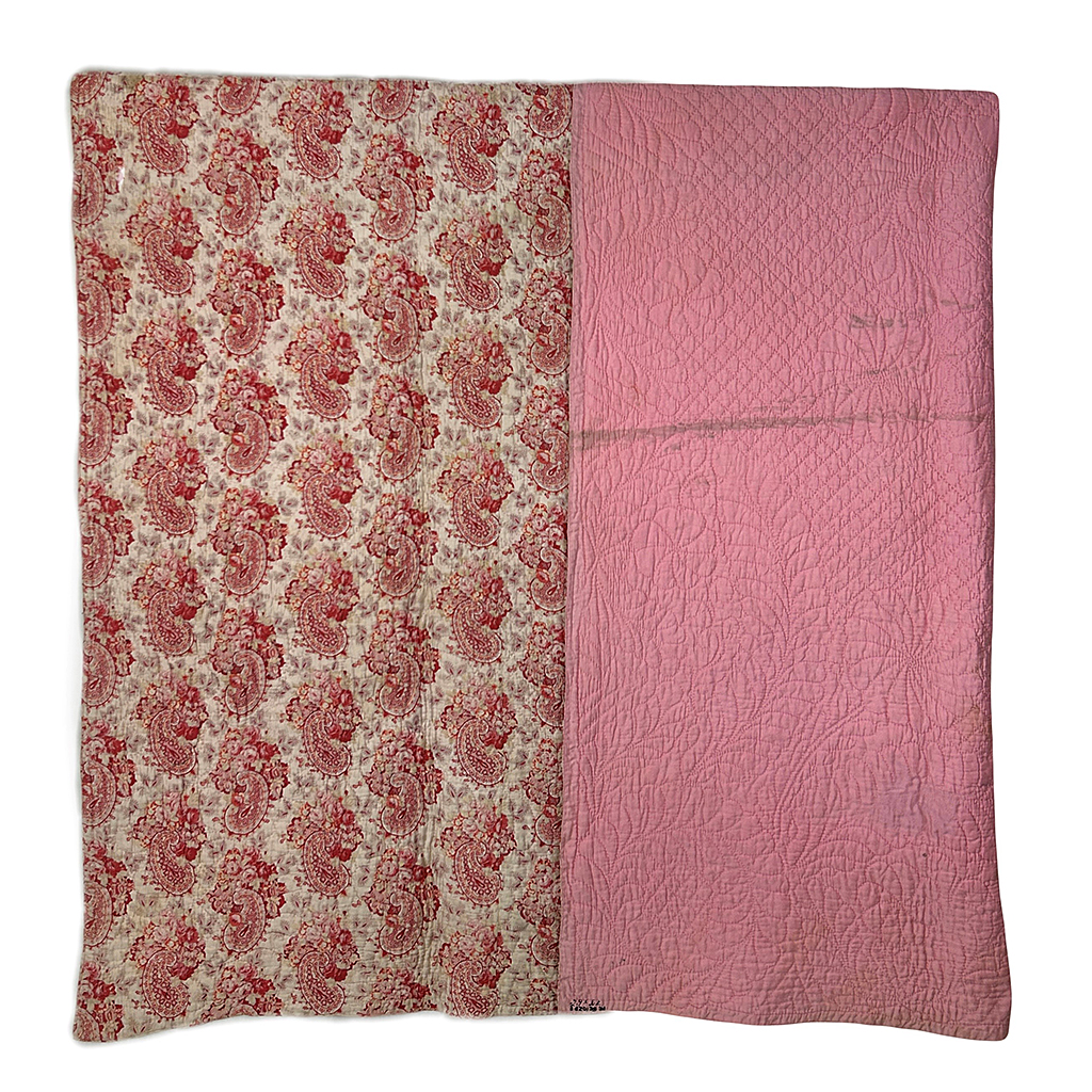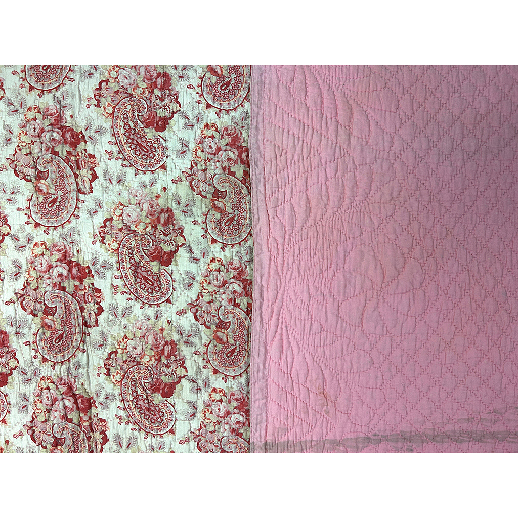PINK PAISLEY FLORAL DURHAM QUILT WITH REVERSE PLAIN PINK SIDE 7'9'' X 6'6''