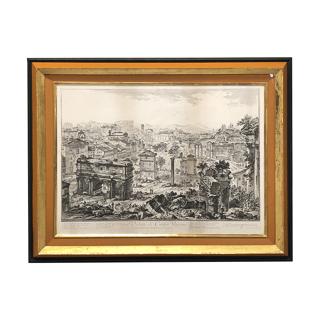 PIRANESI ENGRAVING IN A GREY AND GILDED FRAME VEDUTA DI CAMPO VACCINO 44 CM X 58 CM