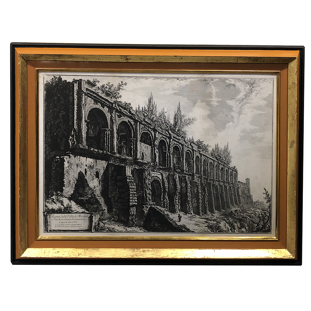 PIRANESI ENGRAVING IN A GREY AND GILDED FRAME VILLA DI MECENATE 46 CM X 70 CM